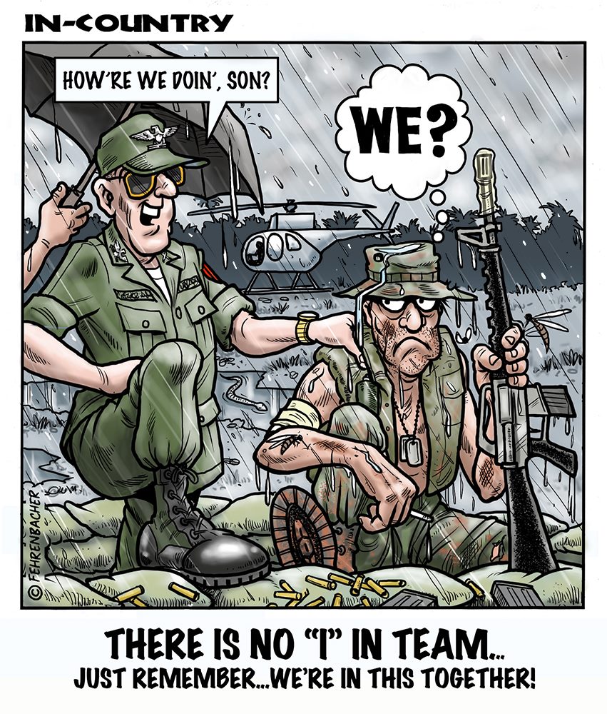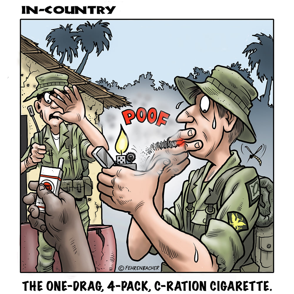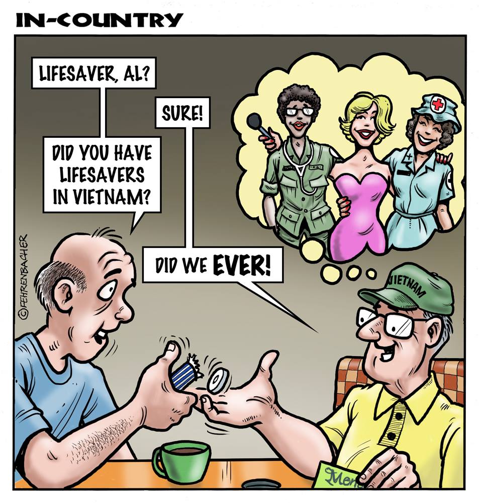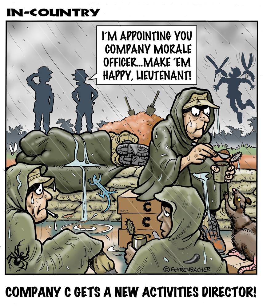 Phil enlisted in the Army in 1965 where you served for years in Vietnam.  He became a graphic designer and has worked for the state of Oregon for 26 years.  He retired in 2003 and started the Cartoon "In-Country".  The cartoons reflect his experiences during his tour of duty in South Vietnam.