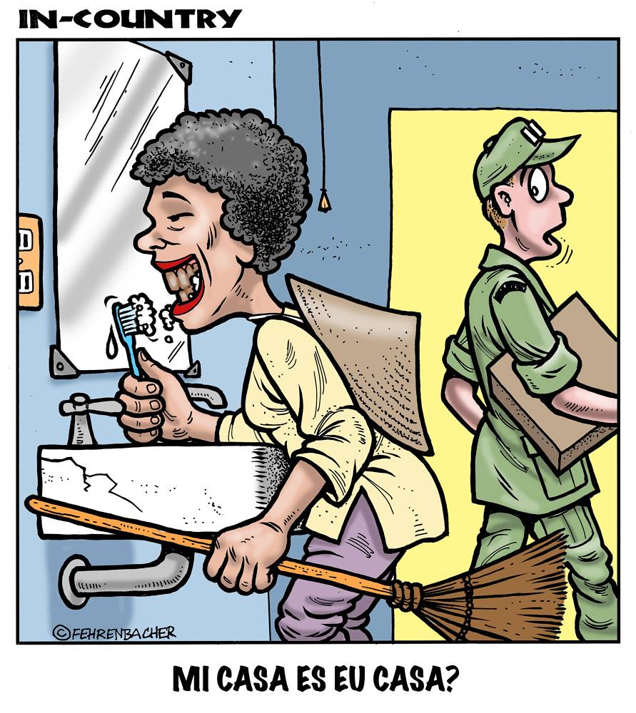 Phil enlisted in the Army in 1965 where you served for years in Vietnam. He became a graphic designer and has worked for the state of Oregon for 26 years. He retired in 2003 and started the Cartoon "In-Country". The cartoons reflect his experiences during his tour of duty in South Vietnam.