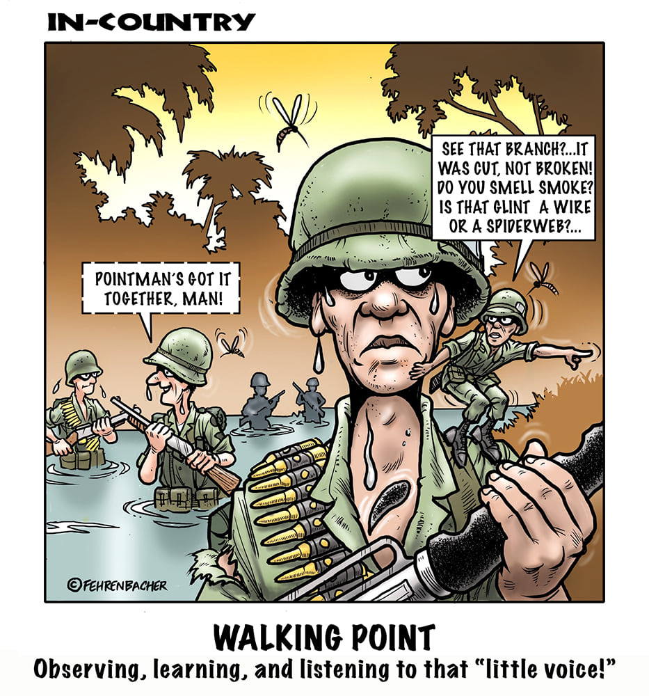 Phil enlisted in the Army in 1965 where you served for years in Vietnam. He became a graphic designer and has worked for the state of Oregon for 26 years. He retired in 2003 and started the Cartoon "In-Country". The cartoons reflect his experiences during his tour of duty in South Vietnam.
