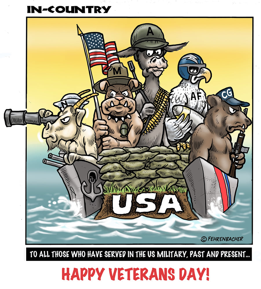 Phil enlisted in the Army in 1965 where you served for years in Vietnam.  He became a graphic designer and has worked for the state of Oregon for 26 years.  He retired in 2003 and started the Cartoon "In-Country".  The cartoons reflect his experiences during his tour of duty in South Vietnam.