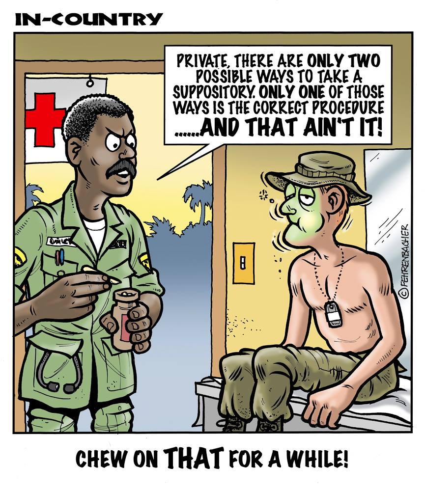 Phil enlisted in the Army in 1965 where you served for years in Vietnam. He became a graphic designer and has worked for the state of Oregon for 26 years. He retired in 2003 and started the Cartoon "In-Country". The cartoons reflect his experiences during his tour of duty in South Vietnam.